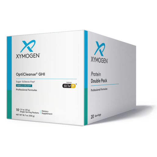 OptiCleanse® GHI Sugar- and Stevia-Free‡ is a comprehensive, fructose-free, low-allergy–potential dietary supplement designed to support gastrointestinal (GI) function and balanced detoxification. It features VegaPro™, XYMOGEN’s proprietary amino acid and pea/rice protein blend; Aminogen®, to facilitate protein absorption; phytonutrients; mineral amino acid chelates; and activated B vitamins, including Quatrefolic® and methylcobalamin. In conjunction with a modified elimination diet, OptiCleanse GHI Sugar- and Stevia-Free‡ addresses GI and hepatic function as well as eicosanoid balance and cytokine metabolism. This formula is suitable for vegans.*